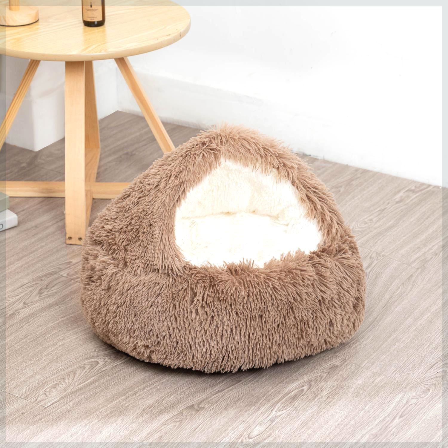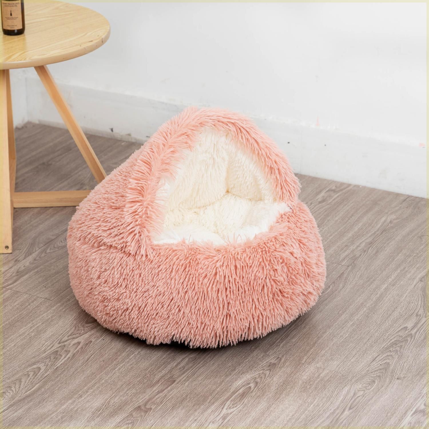 長絨毛柔軟蓬鬆,觸感極佳,像溫暖懷抱。它能鎖住熱量,為寵物禦寒。窩內空間充足,讓寵物舒展自如。底部結實,外觀精緻。易清潔打理,不易藏污,是愛寵舒適小窩。